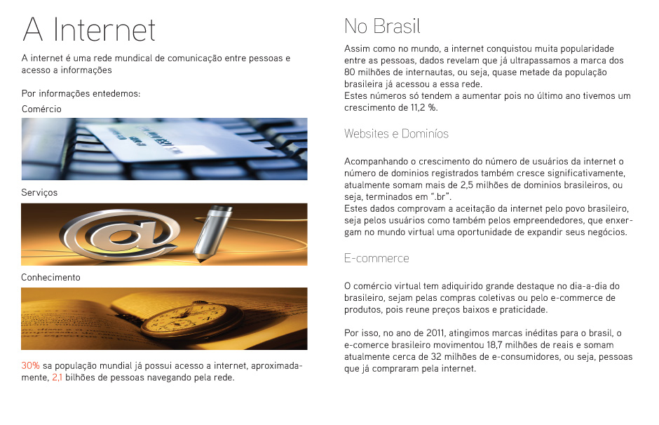 Os itens a seguir lhe darão uma ótima idéia de quem somos, o que fazemos e como podemos transformar sua empresa usando a tecnologia. É rápido e vale a pena.